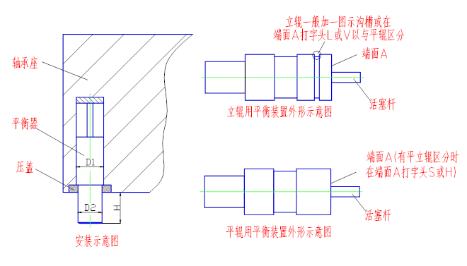 6. 在每个架次下线换辊时,应及时检查平衡装置伸出轴承座部分的尺寸H是否符合设计尺寸要求,若发现未达到应伸出的尺寸,平衡装置可能被卡住或失效,此时应检查和更换。